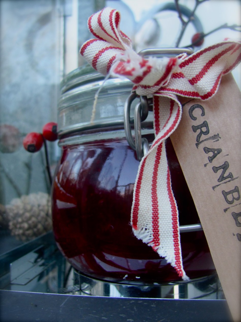 Last year we made cranberry sauce for the first time and it was one of the real highlights of Christmas dinner: flavoursome, light and far nicer than the bought version. It also was surprisingly easy to make: one minute you have a saucepanful of firm, precise little cranberries and the next you have this wonderful vividly red jam. I adapted one of Nigella Lawson’s recipes for this, because as Trish Deseine tweeted last week, ‘Christmas was invented for Nigella wasn’t it?’.