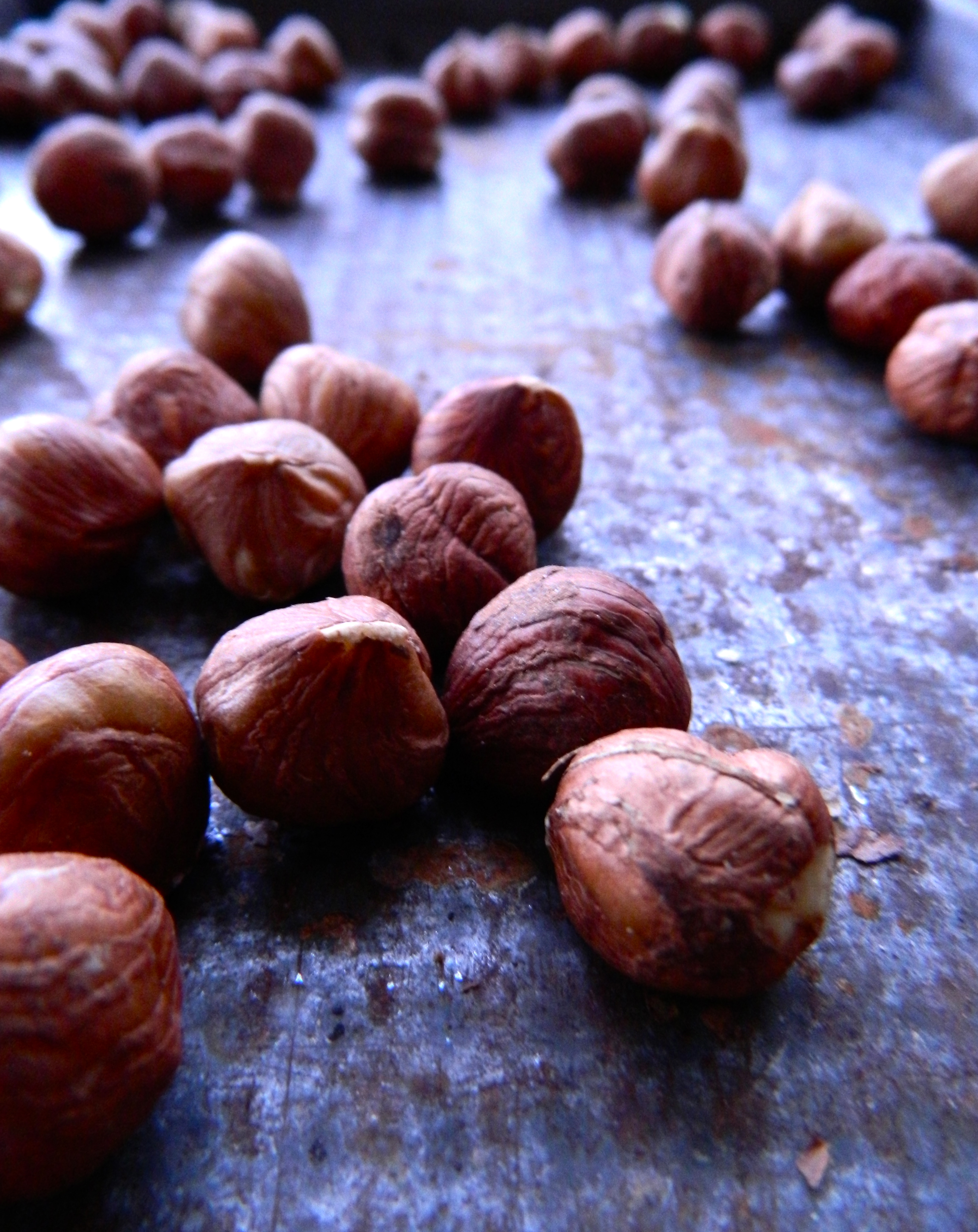 Bring eggs and butter to room temperature and beat together until pale and creamy with the vanilla extract. In another bowl, combine flour, sugar, chopped and skinned hazelnuts (their skins rub off if you toast them gently in a warm oven for a few minutes). Add the flour mixture to the egg mixture, stir in the chocolate chunks and mix until completely combined. Bring the dough together gently on a floured (icing sugar/flour) surface, without kneading it per se: just turn it over a few times and shape into two oblongs, about three-quarters of an inch thick. Bake on parchment for about 20 minutes or until pale golden and then slice into biscotti shapes, sprinkle some granulated sugar over them and bake again for 20 minutes. Allow to cool completely and then dust with icing sugar.