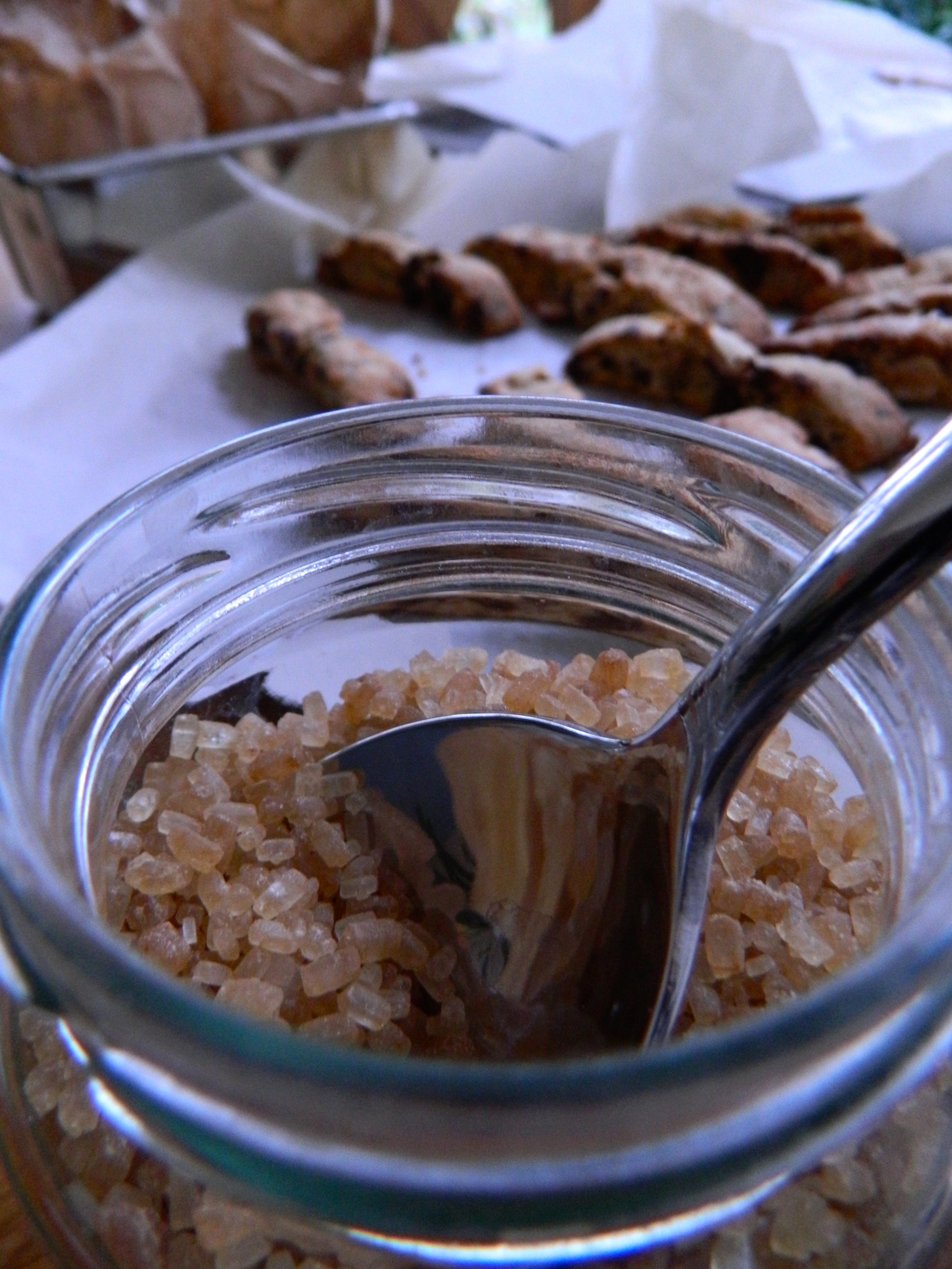 The word ‘biscotti’ usually indicates an elongated – and rather elegant – crisp biscuit. According to Wikipedia, font of useful knowledge that it is, ‘biscotti’ comes from the Medieval Latin biscottus, meaning twice-cooked. Like cantuccini, the terse little biscuits that Carluccio’s have spent half a decade trying to push on us, biscotti are designed to be eaten for dessert, alongside coffee, liqueur or something cold and creamy, like homemade ice cream or sorbet. The great thing about biscotti is that you can add whatever you feel like to them – pistachio and orange zest, dark chocolate and sour cherry or pine nut and lemon. The basic principle is to make a biscuit dough and bake it for about 20 minutes, or until soft and golden. Then slice the half-baked dough and bake again for another 20 minutes. Serve them in a big jar or dust with icing sugar and lay them out flat on a long plate.