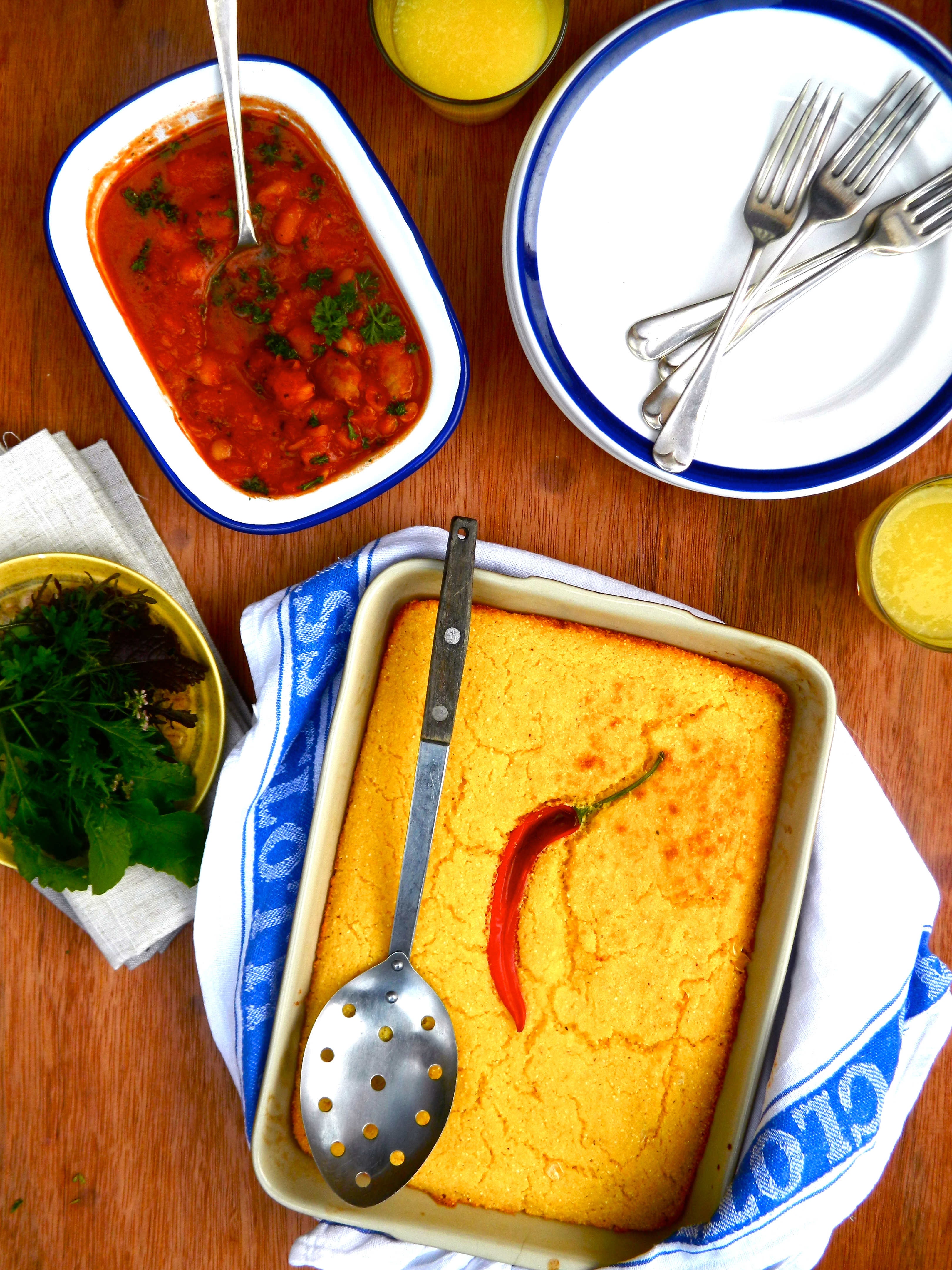So last week, on one of those raw and drizzly days that give November a bad name (everything was wet) I decided to make my mum’s cornbread and my own homemade baked beans. The colours were bright and cheery, the tastes comforting and familiar, and November suddenly didn’t feel quite so grim.