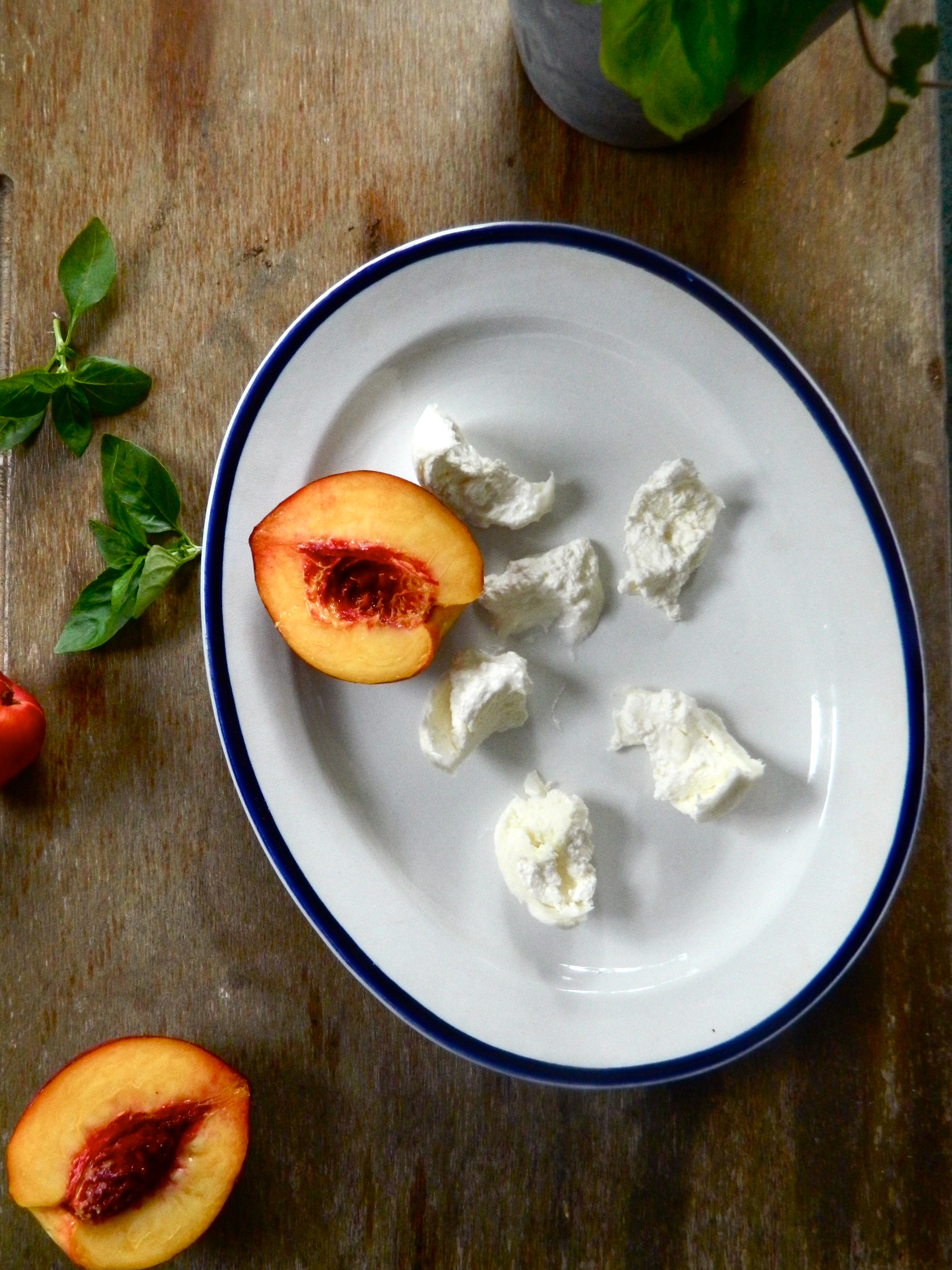 Having finally found it in Dublin a few days ago, I decided to make a really simple salad that could be eaten like an antipasti plate, because in my experience, burrata always ends up getting shared anyway.