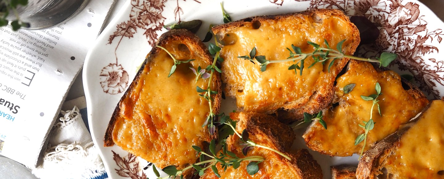 Home from my morning of exploring the area around St Paul’s Cathedral, Smithfield & the Barbican (note: there’s a very cool deli/grocer/plant shop near the entrance to the Barbican Estate flats which is worth a look), I decided to use my lovely sourdough to try Henderson’s recipe for Welsh rarebit, which is on the menu at St John & features in his Nose to Tail cookbook. I’ve always been a fan of Welsh rarebit – my parents used to occasionally make it for lunch on Saturdays when I was small, and although I always protested for some reason I inevitably ate and enjoyed it every time. Now that I’m older, I see Welsh rarebit for what it truly is: it’s that elusive rounded savouriness umami on toast. And I know how good it tastes with a cold drink alongside it – it’s the perfect snack for serving late on at a party; just watch those tired eyes light up when you bring a plateful of these to the table.