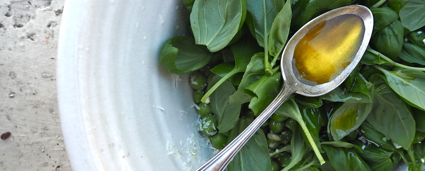 Place the peas in a bowl and add the almonds, garlic, parmesan, garlic and half the olive oil & season. Blend with a hand blender till smooth, or pound with a mortar & pestle if you’re channelling your internal Italian nonna. Add the basil leaves along with the rest of the olive oil and a very generous squeeze of lemon juice and blitz again. Taste it at this point – does it need more garlic, lemon juice or seasoning? Are you happy with the consistency or does it need more oil? Add whatever it requires, stir again, then transfer to a lidded jam jar, cover with a little olive oil and refrigerate until needed for up to three days.