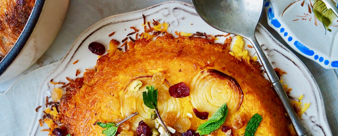 This crispy-on-the-outside-fluffy-on-the-inside Iranian rice dish would be perfect for serving as the starch for a Middle Eastern-themed meal. While it’s a great accompaniment to a chicken tagine, it tends to steal the show a bit: your guests may not have seen anything like it before, and as far as I can tell, everybody is hardwired to love crispy bits.