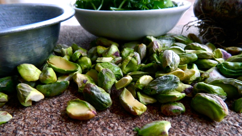 Gremolata is an Italian garnish, made from finely diced garlic, parsley and lemon zest. I had some pistachio nuts to hand so I included these as the base of the gremolata, and it turned out brilliantly with a great texture and beautiful, rich, nutty flavour.